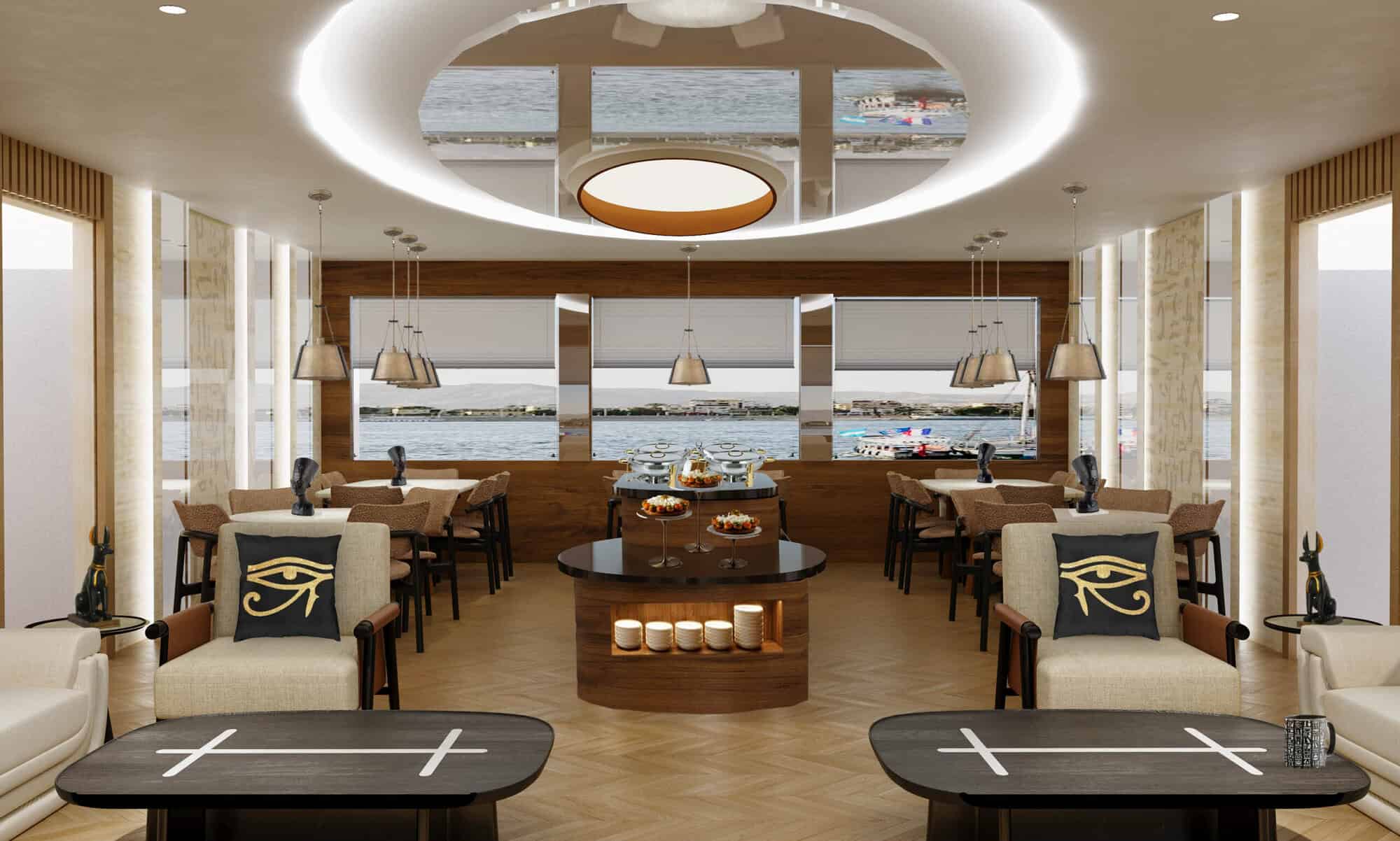 The All Star Fayrouza is an elegant dahabiya that offers an intimate and authentic sailing experience along the legendary Nile River. This traditional Egyptian sailboat combines classic design with modern comfort, featuring beautifully appointed cabins with panoramic river views. Unlike larger cruise ships, the All Star Fayrouza accommodates fewer guests, creating a more personalized journey as it glides silently using wind power.